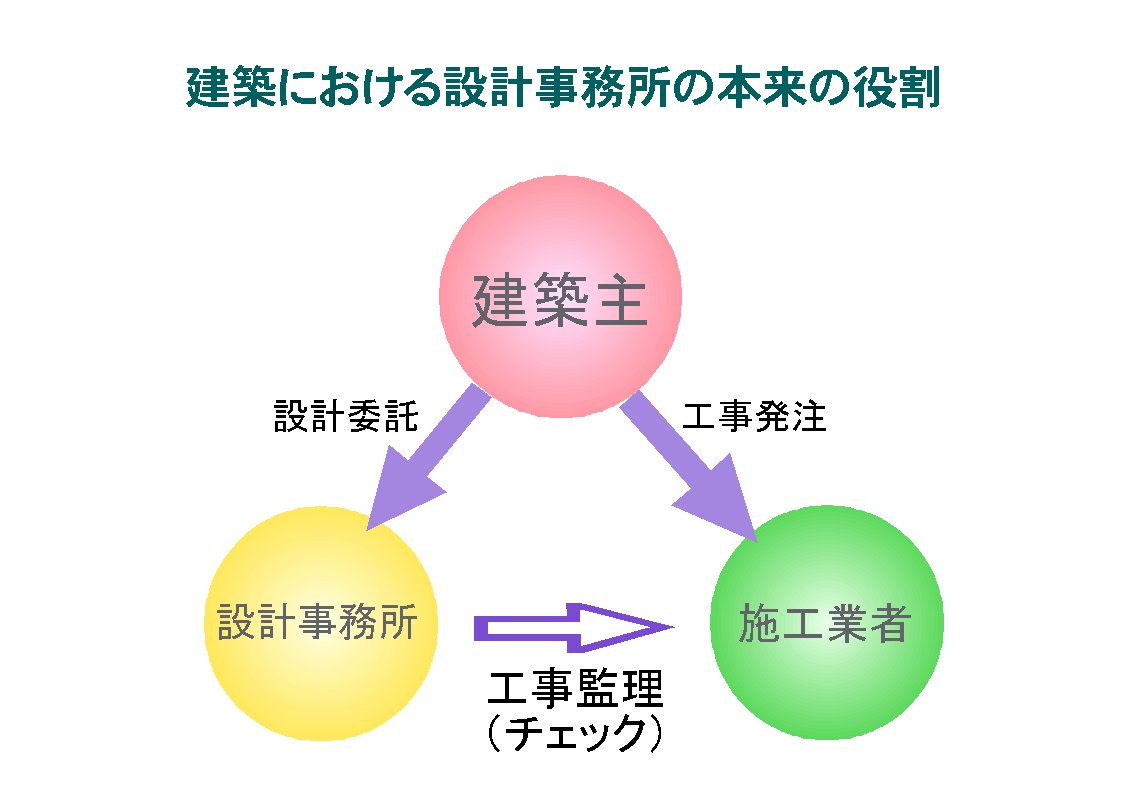 設計や工事監理は安全で快適な建物を建てるため非常に重要なシステムです。建物を建てる方から直接依頼されるかどうかにより、その重要なシステムが機能するかどうかが決まります。