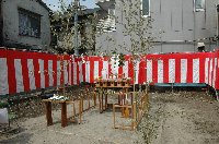 ▲地鎮祭の準備 ![]() ▲ボーリング調査 |