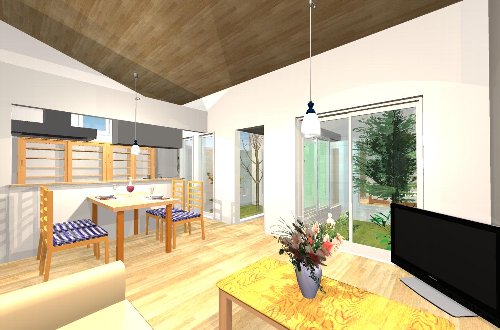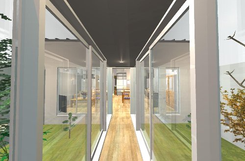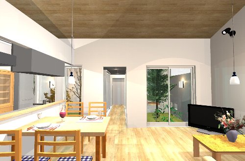 ■中庭 中庭から居間の方向を見ています。 中庭に面した開口部は広くとります。 |