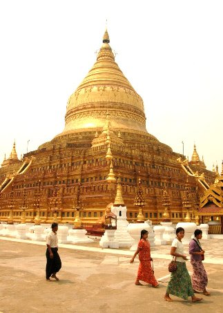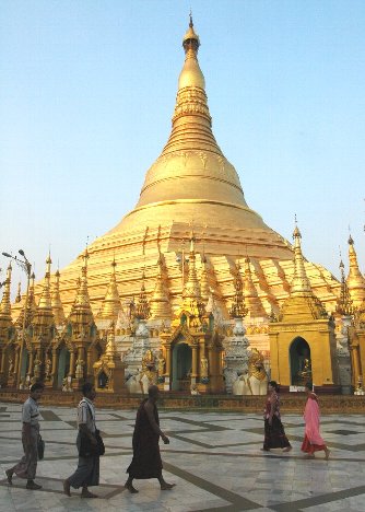 ![]() ▲シュエジゴンパゴダはお参りの人が途絶えない |