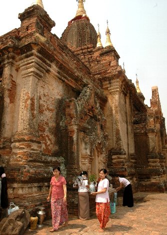 ![]() ▲パゴダにお供え物を準備する村の娘たち |