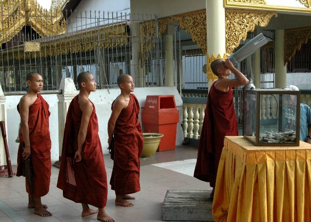 ![]() ▲僧侶が順番に望遠鏡で覗くのはパゴダ先端のダイアモンド |