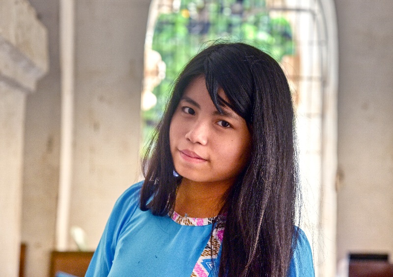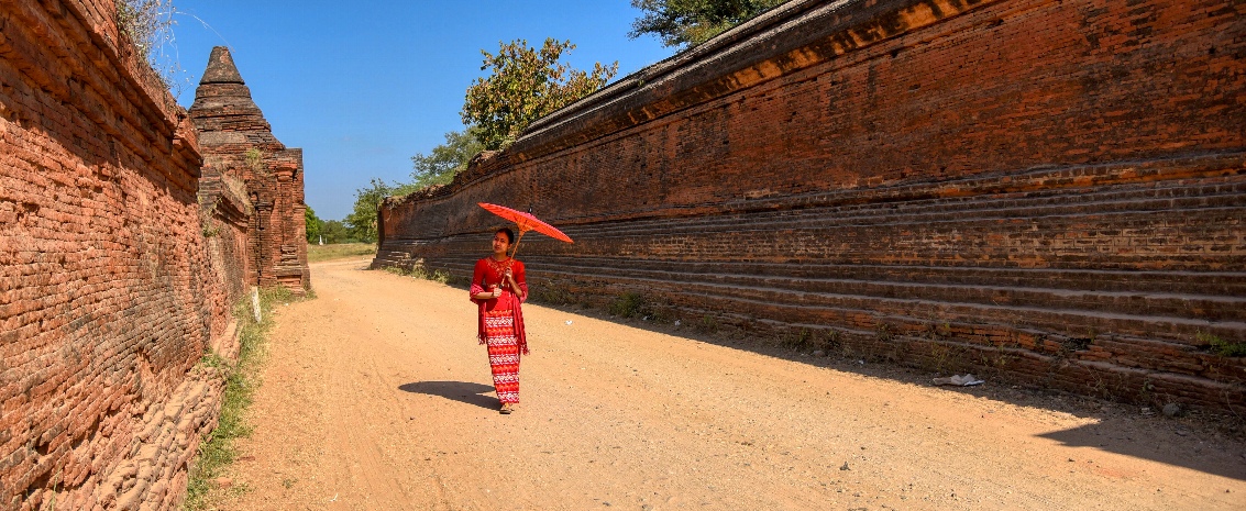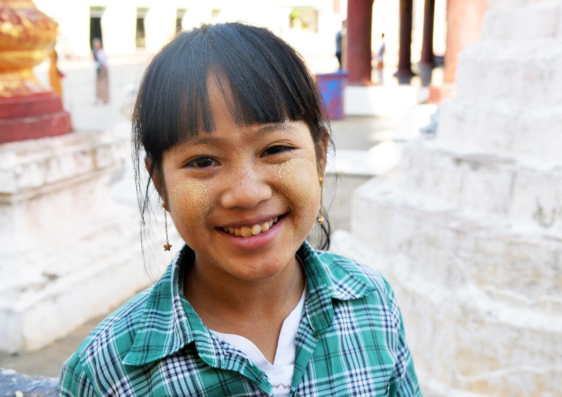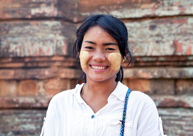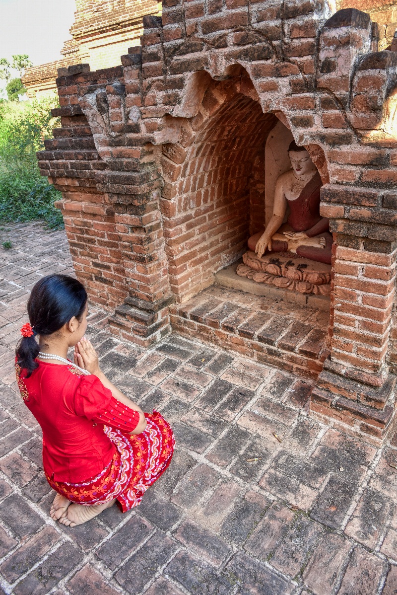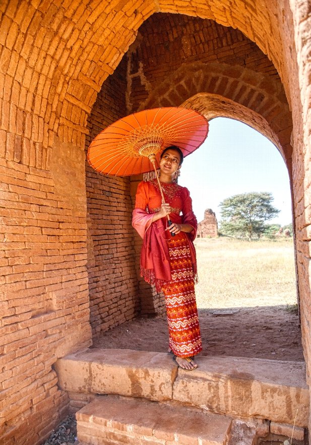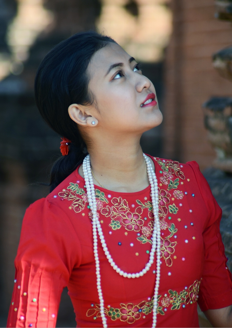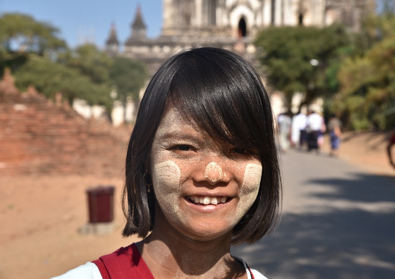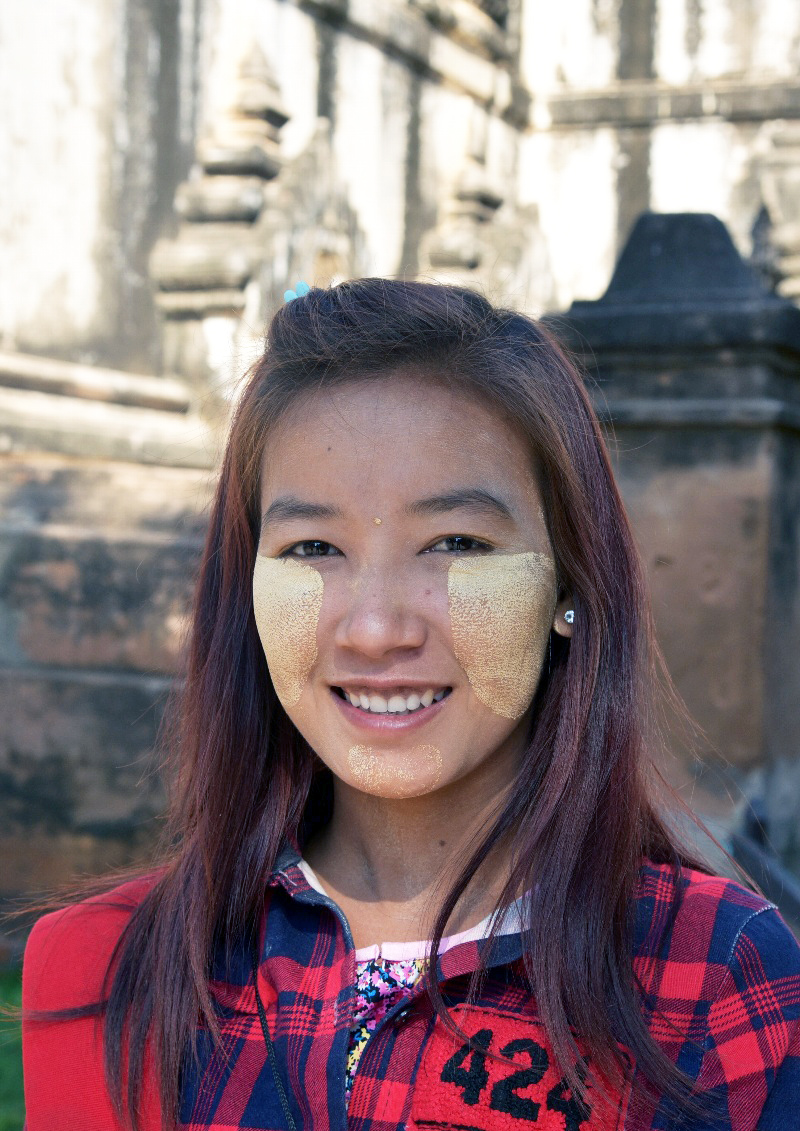 ![]() ▲参拝客の彼女はカメラにポーズ(Thatbyinnyu Temple にて) |
