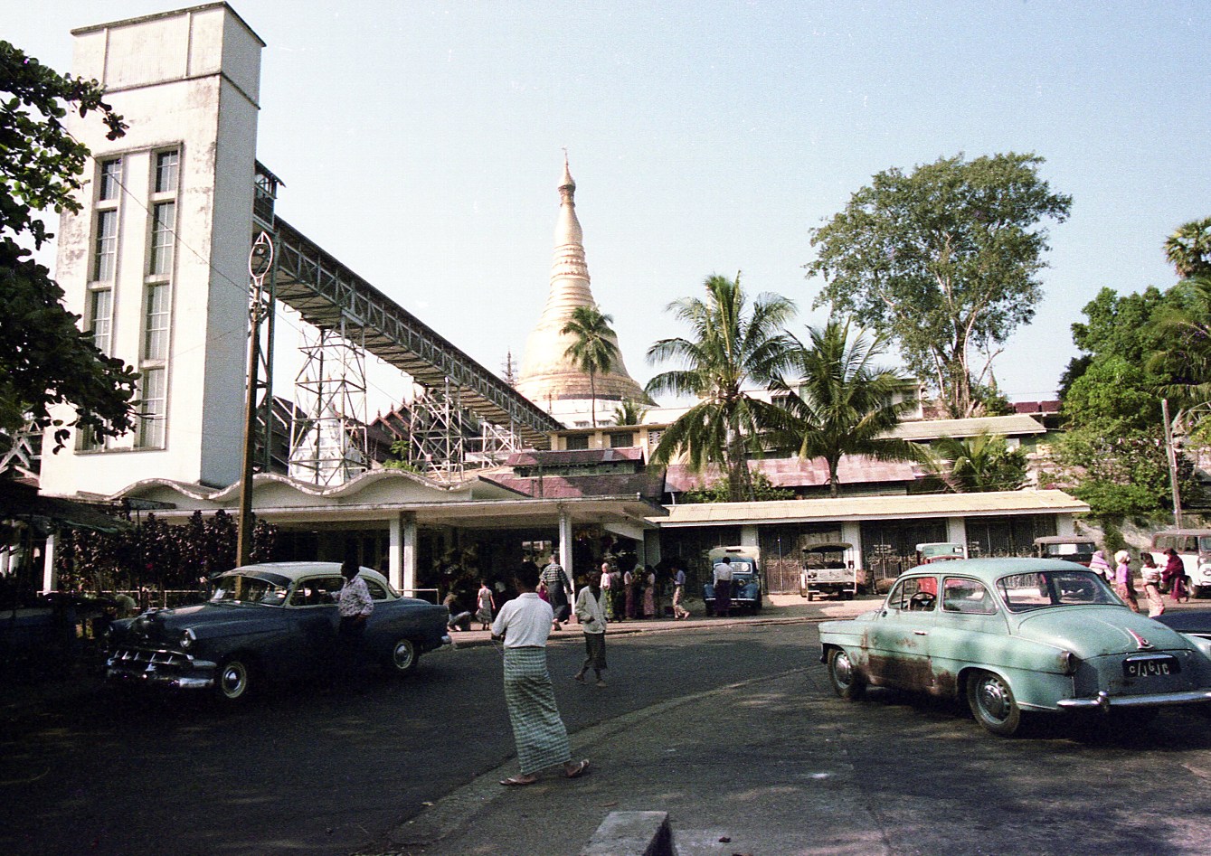 ![]() ▲シュエダゴンパゴダ/当時からエレベータはあった。市内には今では貴重なクラシックカーであふれていた |