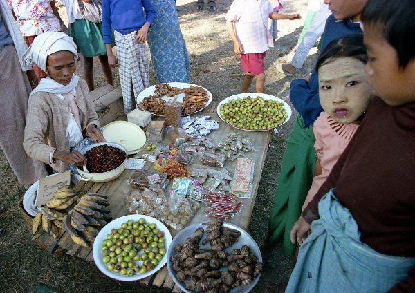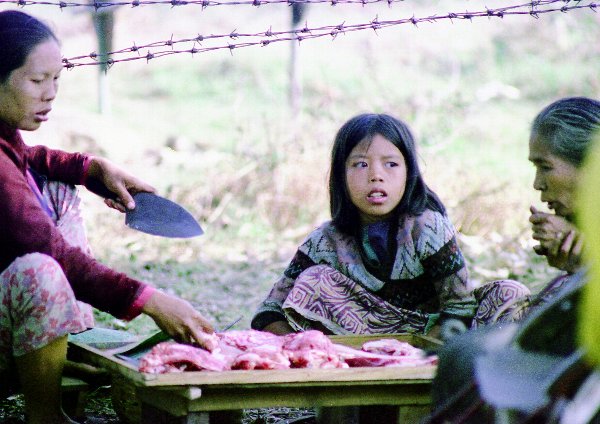 ![]() ▲ヤンゴン駅構内で肉を売るのは家族? |