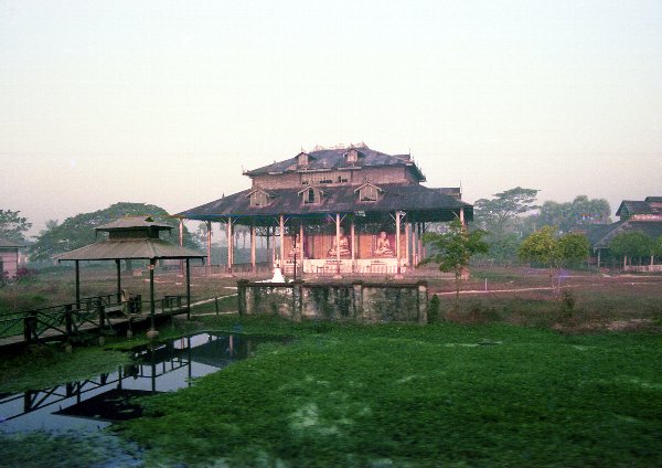 ![]() ▲トングー付近 列車から見た木造の寺院 |