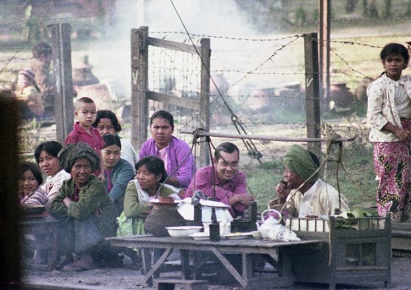 ![]() ▲早朝の駅構内での談笑か(トングー駅) |