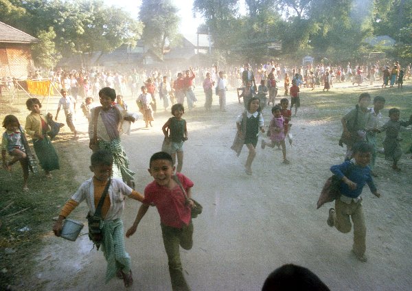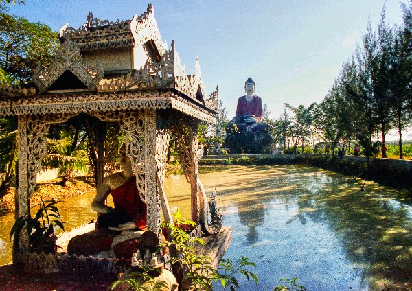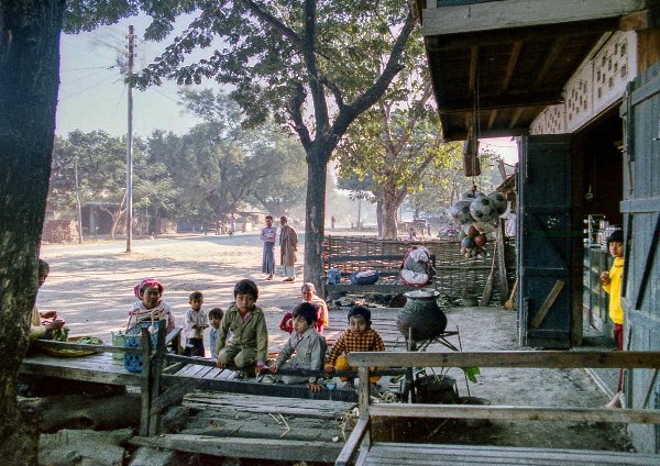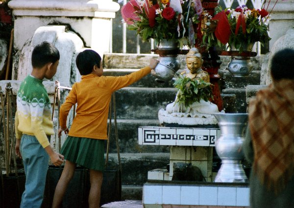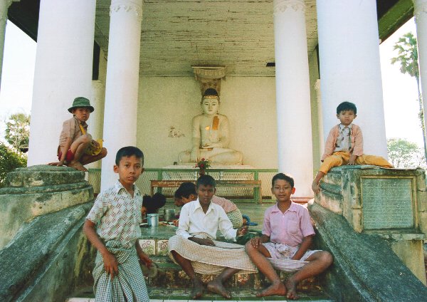 ![]() ▲仏陀像の前でたむろする子供たち(バゴー近くの寺院にて) |