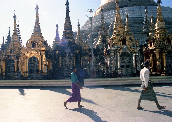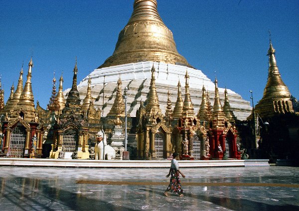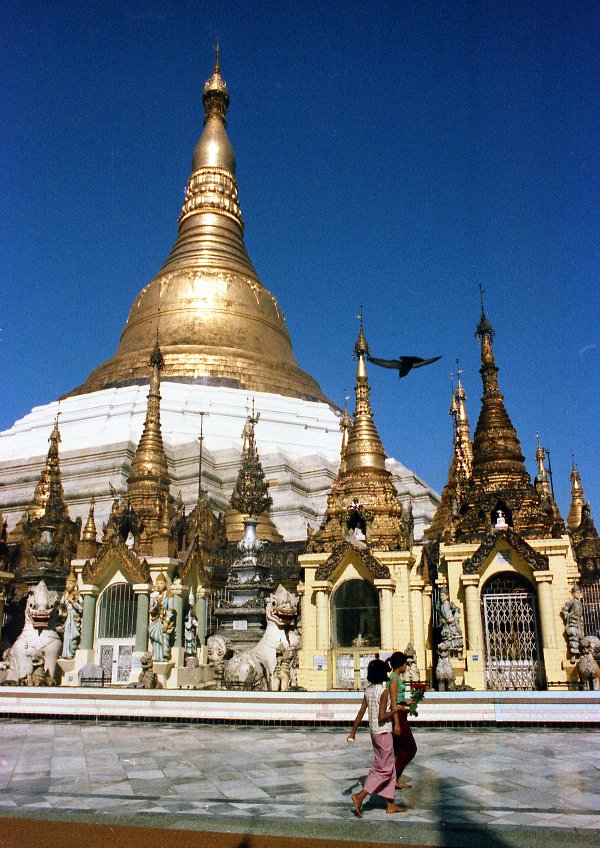![]() ▲シュエダゴンパゴダ/▲基壇に金箔が施されていない貴重な風景 |