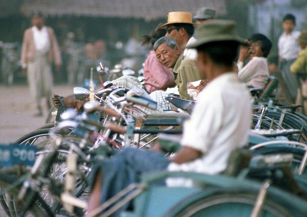 ![]() ▲ヤンゴン市内で客待ちのサイカー |